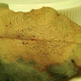 As the fungi matures it will sprout black fruiting bodies within concentric rings within the fungal spots and blights and almost exclusively occur on the upper leaf surface. The spores use rain splash to carry and spread itself further across the same leaf or onto other nearby leaves.